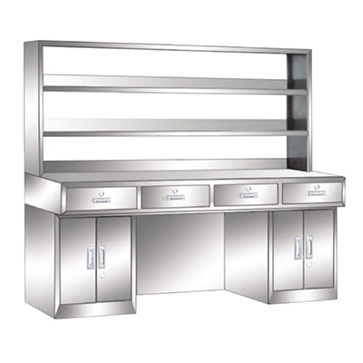 Built with a large work surface and two under mounted drawers, this medical equipment table can store items such as microscope slide and covers, vaccination supplies, and other exam supplies. The top has plenty of room for a microscope, centrifuge, and other tools, while still leaving clear space for paper work.